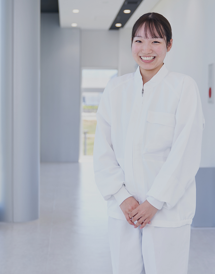 小中学校ではバスケット、高校ではダンス部と、スポーツに打ち込む。ロキテクノは高校の先生の紹介で知り、会社説明会等で会った社員の人柄や雰囲気の良さに惹かれて入社。現在はフィルター製造工程の中でも接着などの二次加工をメインに担当するほか、幅広い製造業務に知見を広げている。またロキテクノが運営する社会人野球チームの応援団にも所属し、仕事にプライベートにと充実した日々を送っている。
