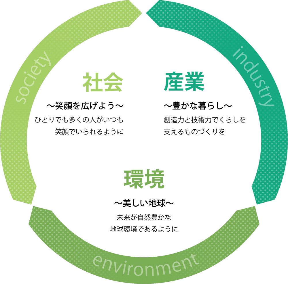 向けて「産業」「環境」「社会」を軸とした取り組み方針